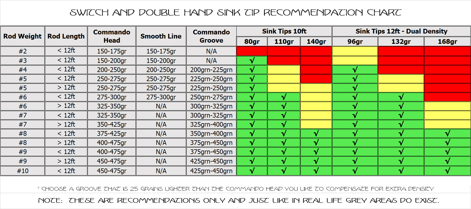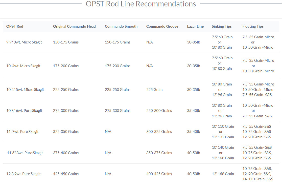 ***Commando Heads are shorter, more dense, and have a larger diameter than other skagit lines. This allows us to utilize more line stick on the water, and in turn, lets us use a much lighter grain weight when compared to longer skagit heads. Please do not pair our lines based on rod manufacturer grain windows, unless it is specified for Commando Heads ***