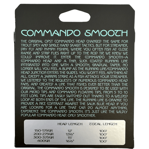 Whether you're new to Skagit-style fishing or a longtime OPST fan, the Commando Smooth is a must-have for your line arsenal. It delivers the powerful performance of the original Commando Head, with the added benefit of smoother presentation, seamless stripping, and line control like never before.