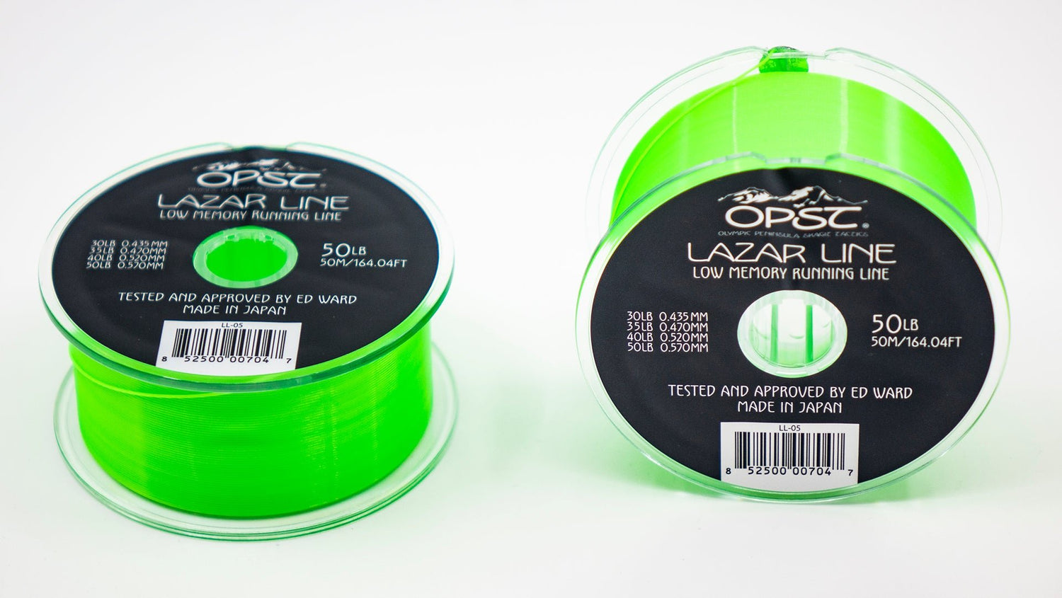 OPST's Lazar Line is a premier shooting line designed to maximize casting distance and enjoyment. The line is mono-based, but without the coiling and memory common to similarly thin mono running lines. OPST Lazar Line has virtually no memory, is incredibly slick and supple, and excels in hot and cold conditions. It has a limited stretch to aid in strike detection, and it ties beautiful knots. Many people have switched to Lazar Line as their all-time favorite. It comes in 25, 30, 35, 40 and 50 pound test for everything from trout to king salmon.