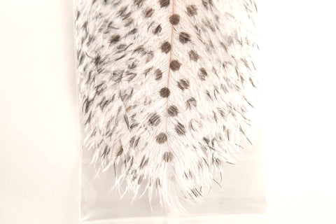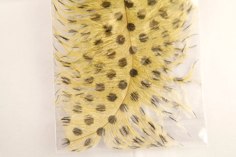 Now with new BIGGER DOTS!! Like our popular barred ostrich, these dotted ostrich drabs are the perfect size, stiffness and color for steelhead flies and streamers. With 2 per pack these feathers represent a great value. See for yourself why the drab is our favorite ostrich for steelhead fly tying.